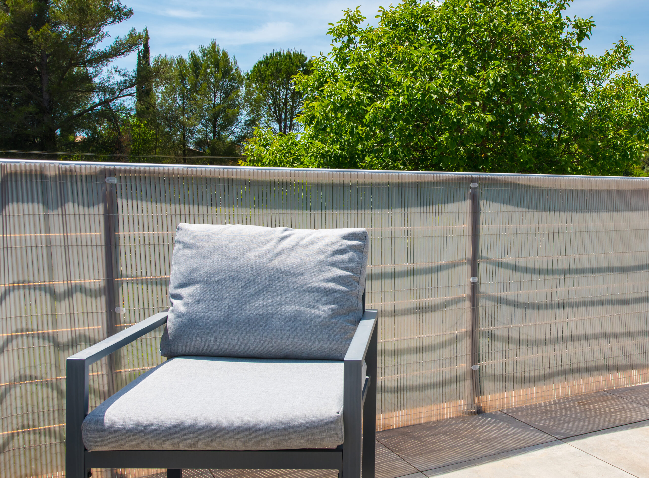 Canisse PVC double face translucide qui laisse passer la lumière tout en gardant le côté occultant. Densité 1,35 KG/m2